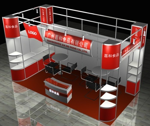 其實標攤同樣可以做出特裝的效果,充分利用現有資源和智慧,如效果圖中的標攤,利用鋁合金、展板、亞克力板畫面和燈箱效果的設計和拼裝,搭配漂亮的八棱柱特裝標攤,適當添加幾支射燈,一個標準的特裝展位就出來了,特裝小標攤和設計需要注意以下幾點:
